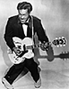 ロックンロール(Rock'n'Roll)は、ラジオDJアラン・フリードが考案した1950年代初期に誕生した“音楽の造語”である。ロックンロールの特徴は黒人音楽であるR&Bの均等なエイト・ビート、ブルースのシャッフル、ジャズのスウィングなどのリズムに、ブルースのコード進行(AADAEDAEのような3コード進行)や音階(スケール)を応用した楽曲構成である。 ロックンロールの定義は、それらの特徴に白人音楽カントリー・アンド・ウェスタンの要素を少し掛け合わせたものとされている。 ロカビリーとロックンロールの境界線は曖昧で、ロックンロール、ロカビリー好きの永遠の課題と言える。エルヴィスが「キング・オブ・ロックンロール」「キング・オブ・ロカビリー」と呼ばれるように、ロックンロールとロカビリーは微妙なところで同義語でもあり、異義語でもあると言える。 厳密に分けるとすれば、白人音楽のカントリー・アンド・ウェスタンの要素が特に強いものを「ロカビリー」、黒人音楽のR&B要素が特に強いものが「ロックンロール」とされている。 楽器編成はエレキギター、エレキベース、ドラムスという構成が代表的。 加えてサックスやピアノなども使用されることがある。 使用楽器の多彩さは、ロックンロールのルーツが様々なジャンルから成り立っていることを証明していると言えるだろう。 |
